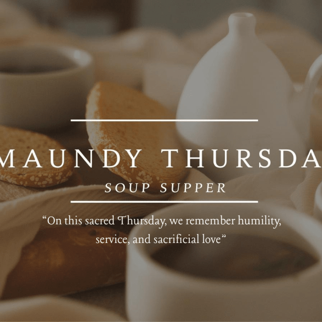 Join us on Thursday, April 2nd at 6:00 pm for our Maundy Thursday Soup Supper Service. All Are Welcome!