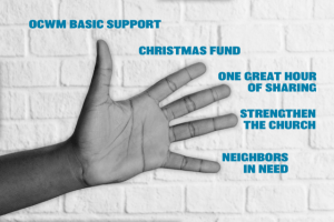 BUCC is a “5 for 5” church and holds annual collections for OCWM Basic Support and our four special mission offerings: Neighbors in Need, One Great Hour of Sharing, Strengthen the Church, and The Christmas Fund.